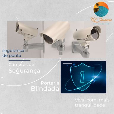 Sistema de segurança: portaria blindada, câmeras e monitoramento.